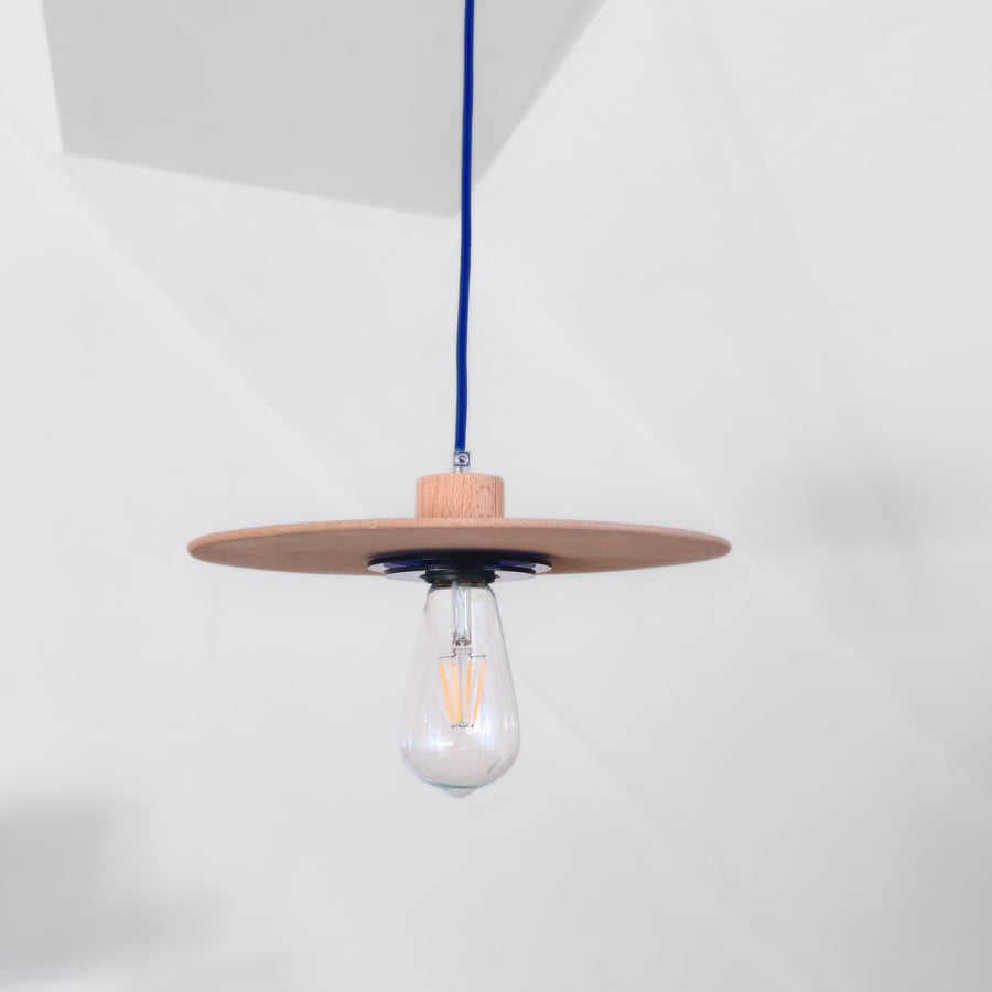 Faite main à Bruxelles, elle diffuse une lumière douce et solaire. Un petit coin de campagne à suspendre chez soi.