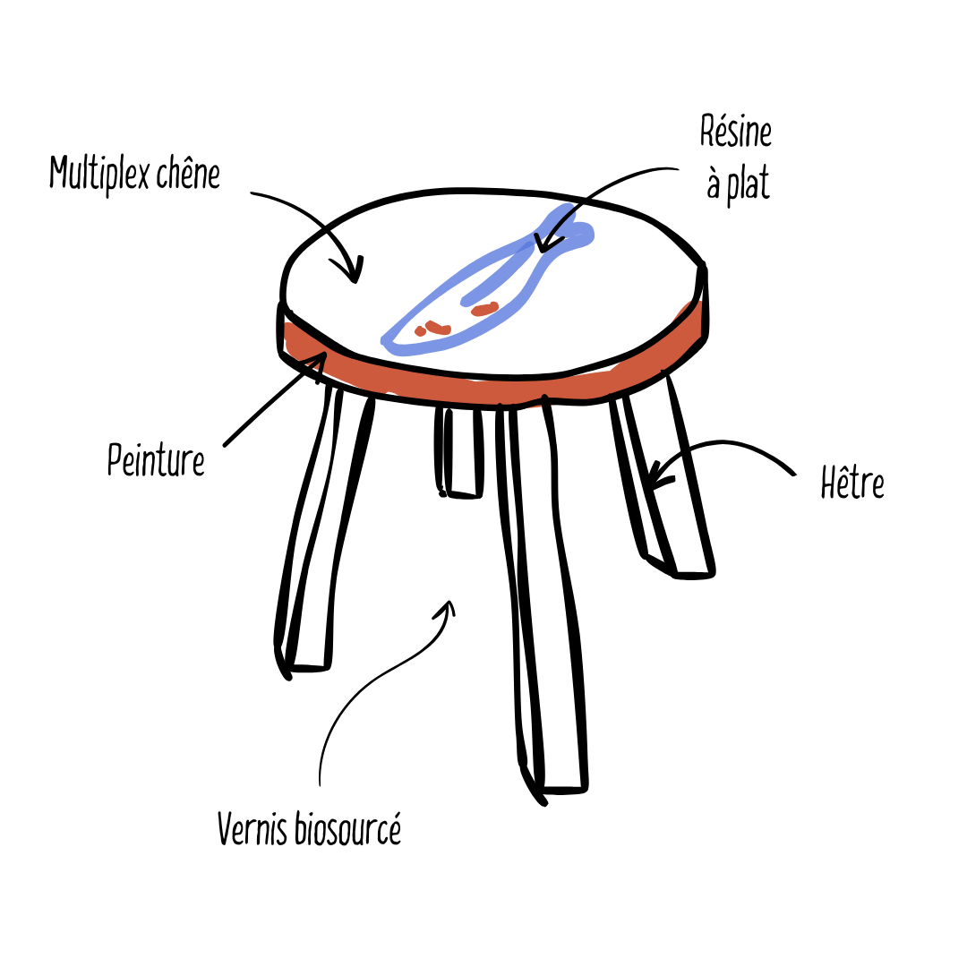FR - Un tabouret graphique et coloré pour enfants, issu de l’univers Atelier POPI.