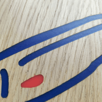 Gravure avec une CNC. Résine coulée à plat dedans.