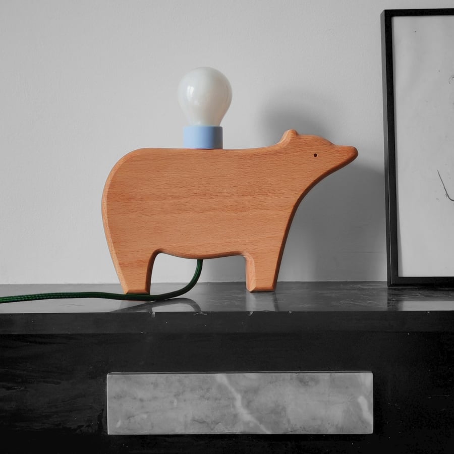 EN - A lamp with soft shapes and a clean design. Raw wood and color. Perfect for adding a touch of originality to the living room or a bit of warmth and softness to a bedroom.